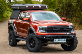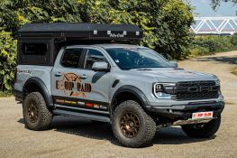 Voici un Raptor préparé avec un Hard-top Alu-Cab, une tente de toit Gen 3-R, Une rehausse terrain Tamer, un aménagement électrique solaire ...