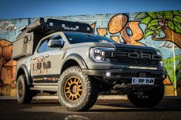 Ce Ford Raptor est équipé d'un Canopy Camper avec auvent et auvent douche, d'un aménagement intérieur Tail Gate Gear, d'unsystème électrique solaire complet ...