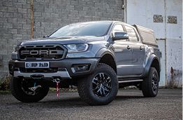 Ce Ford Raptor a été préparé dans notre atelier de Mulhouse avec un hardtop Contour, des barres de toit Alu-Cab, une platine de treuil et son blindage avant adapté, une rehausse de 40mm ...