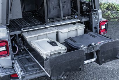Optimisez l'espace de votre Jeep Gladiator avec le tiroir de rangement étanche DECKED, conçu pour les aventuriers qui exigent robustesse et fonctionnalité. Ce système de rangement innovant offre une solution intelligente pour garder votre équipement en sécurité et bien organisé, peu importe les conditions.