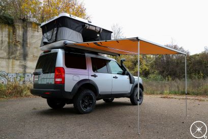 Facile à monter et d'utilisation agréable, cet auvent rétractable s'installe sur le côté de la plupart des galeries ou barres de toit et se range dans un sac PVC.