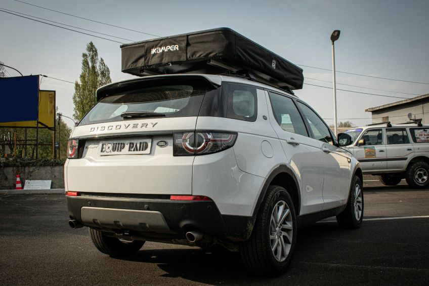 Ce Land Rover Rover Discovery Sport est passé chez Equip'Raid afin de l'équiper d'une tente de toit.