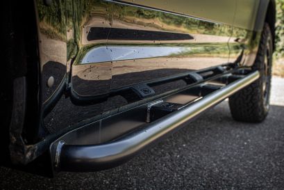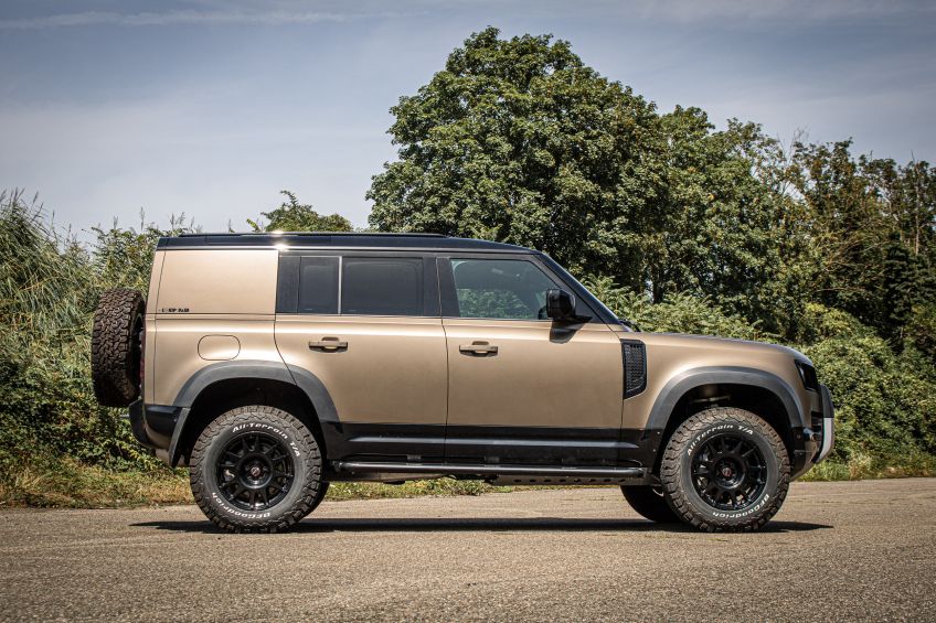 Ce véhicule tout terrain qui respire à la fois le luxe et les envies de grand air, c'est le Land rover new Defender 110. Ce superbe véhicule est passé entre nos mains expertes pour une préparation minimale mais qui lui donne un look d'aventurier.
