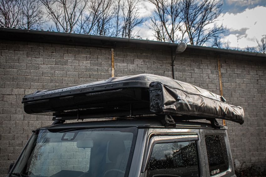 Le auvent Rhino Rack Batwing est maintenant, avec des poteaux intégrés (il suffit de les déplier) en aluminium enduits de poudre noire et toutes les pièces nécessaires au montage qui sont stockés dans le sac du auvent. Pas de pièces supplémentaires qui doivent être logés dans le véhicule.