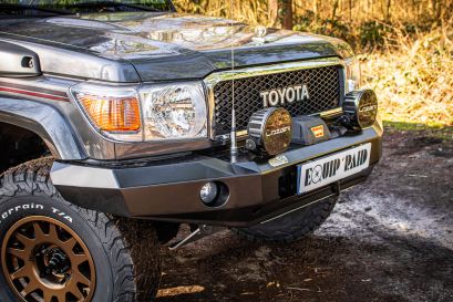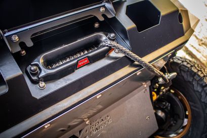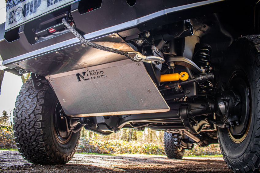 Afin de protéger les élements mécanique, notre atelier à monté un blindage avant (ou ski de protection) de la marque N4 Offroad adapté sur un parechoc de remplacemlent en acier équipé d'un treuil Warn Vr Evo 12s afin de se sortir de toutes les situations !