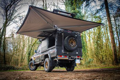 L'auvent Alu-Cab offre un espace supplémentaire à l'extérieur du véhicule, offrant de l'ombre et un abri contre le soleil, la pluie, le vent et d'autres conditions météorologiques. Avec son ouverture à 270°, il peut être déployé sur trois cotés du véhicule, offrant ainsi une grande surface abritée pour diverses activités telles que la cuisine en plein air, se doucher, se détendre à l'ombre ou même ranger du matériel.