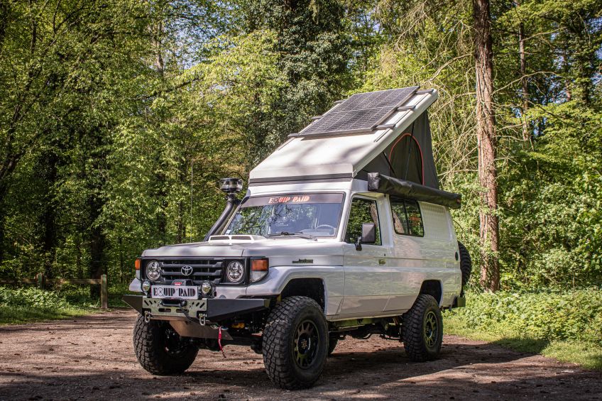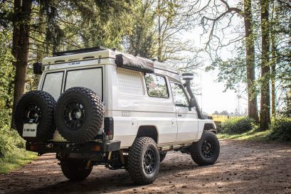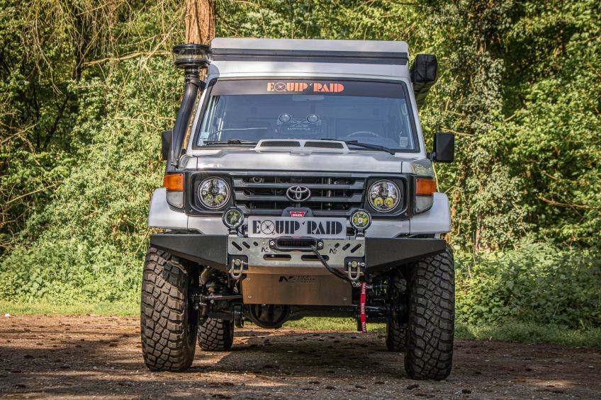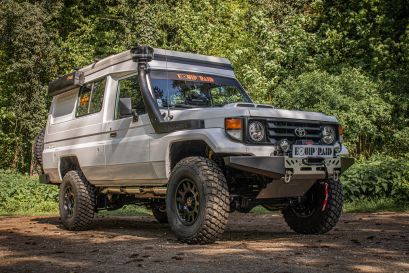 Voici l'une de nos plus belles réalisation ! Un Toyota Land cruiser 78 avec un toit relevable Hercules et intégralement équipé pour le raid !