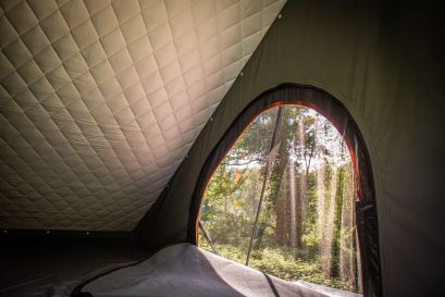 L’auvent de douche peut être utilisé comme une douche ou simplement comme cabine pour se changer.