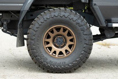 Nous avons également monté des pneus TOYO M/T 315/75/16 afin d'offrir un maximum de grip à ce Toyota 79. Les 5 roues sont équipées de valves à dégonflage rapide APEX qui permettent de s'adapter rapidement au terrain, notamment dans le cas de franchissement de dunes.
