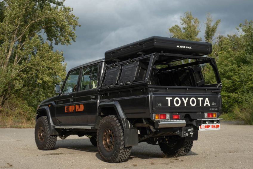 Pourquoi faire comme tout le monde quand on a la possibilité de marquer son originalité tout en gardant l'aspect pratique et esthétique de son véhicule ? Sur ce Toyota 79 de 2023, la benne accueille un kit Pro Bed Rack de Frontrunner afin de garder tout le volume utile de la benne tout en ajoutant du rangement facilement accessible en toutes circonstances. D'origine cet accessoire n'est pas disponible pour ce modèle de véhicule, mais nos équipes de professionnels sont à même de réaliser une adaptation parfaite comme vous pouvez le voir ici. Depuis plus de 30 ans Equip'Raid aménage et équipe des véhicules tout-terrain dans son atelier de Mulhouse. C'est sur le terrain que la différence se fait entre du matériel prévu pour l'esthétique et celui prévu pour l'aventure. En équipant des 4x4 et en réalisant des raids à travers le globe, notre équipe choisi le meillleur matériel qui saura à la fois vous combler sur la fiabilité, la robustesse, mais aussi garder le style caractéristique de votre véhicule tout-terrain.