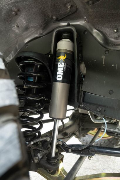 Sur ce véhicule des ressorts hélicoïdaux ont aussi été installés à l'avant et des lames parabolliques OME Dakar à l'arrière avec un tarage de 600kg. Un coussin pneumatique et son sytème de contrôle est obligatoire sur cet équipement afin d'ajuster la répartition du poids sur l'ensemble de l'essieu.