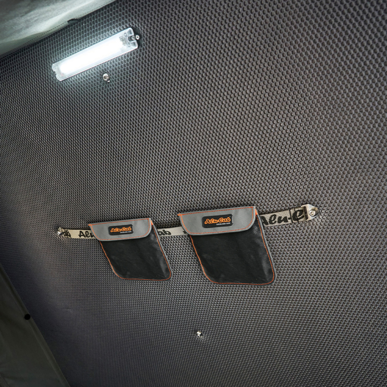 • Ouverture latérale prévue pour chauffage stationnaire : possibilité de faire passer un flexible d'air chaud dans la tente, pour un confort optimal même en conditions froides.