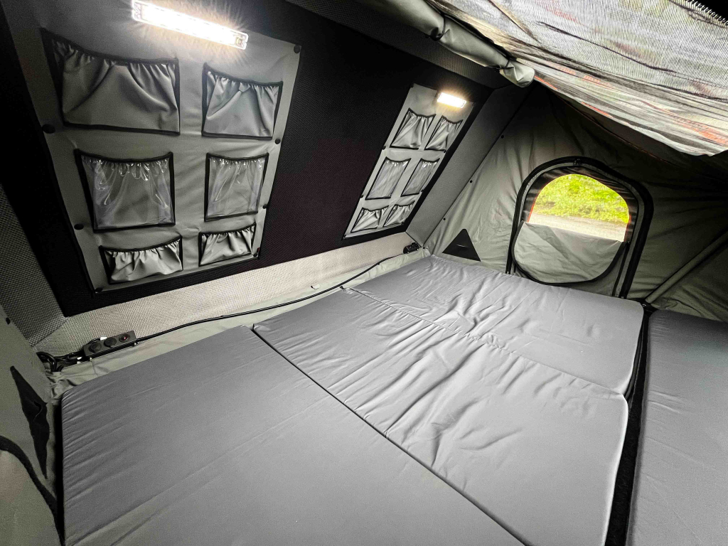 Le ModCap Family est la version conçue pour les familles ou les voyageurs souhaitant un couchage généreux et tout confort. Facile d’accès grâce au passage intérieur, il transforme votre pick-up en véritable abri d’expédition, avec une tente rigide intégrée et un volume habitable utilisable debout.