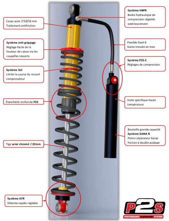 La gamme P2S est entièrement conçue par les bureaux d'études de performance suspension. Les composants sont usinés avec une extrême rigueur puis assemblés et contrôlés dans les ateliers performance suspension en France. Les suspension P2S intègrent les toutes dernières technologies développées pour la compétition, les prototypes, les conditions extrêmes ou les loisirs de sport mécaniques. La gamme P2S vous garanti la performance et la fiabilité tout en intégrant les technologies de pointes. Les amortisseurs P2S sont livrés avec un manuel complet d'aide à la mise au point de votre véhicule.
