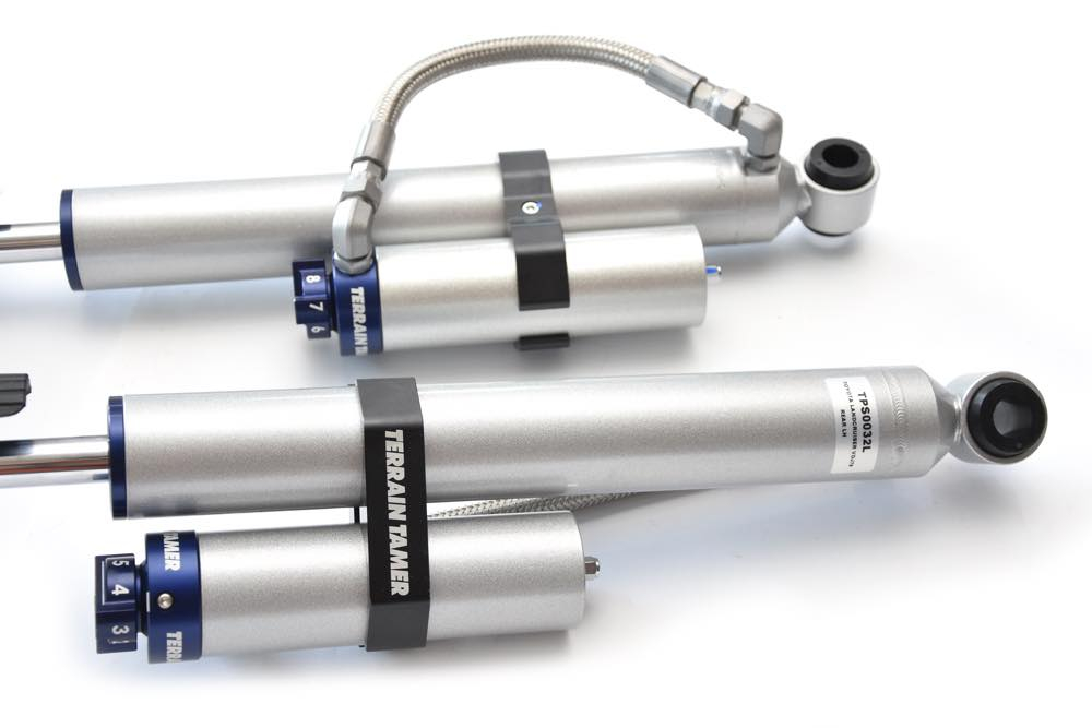 Le fabricant australien d'amortisseurs spéciaux Terrain Tamer lance une nouvelle gamme d'amortisseurs pour un usage tout-terrain sous la dénomination "Pro". Ceux-ci s'adaptent en lieu et place des amortisseurs d'origine en apportant des performances supérieures, notamment sur la capacité de réglage manuel. Comme les autres amortisseurs de la marque, la tige est renforcée, l'alésage est majoré et la contenance d'huile accrue. Un réservoir extérieur permet le réglage de fermeté sur 8 positions différentes.