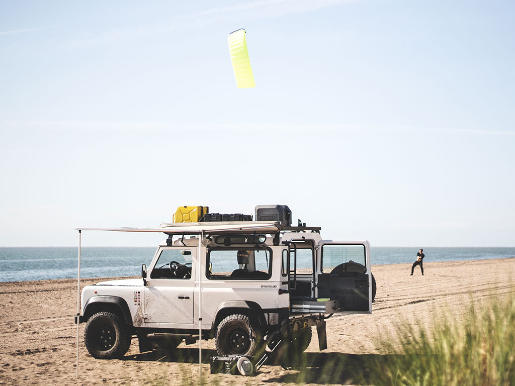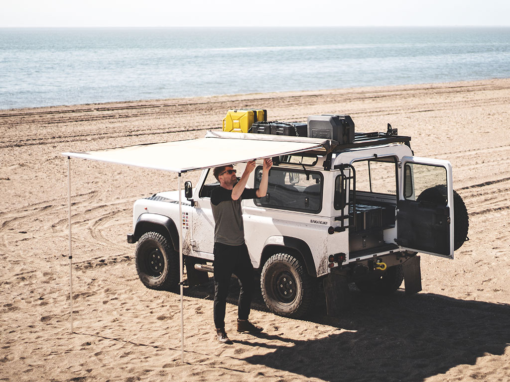 Cet auvent pour galerie mesure 1,4m de large et a une distance de 2,1m à partir du véhicule. Montage rapide et facile à deux personnes en moins de 60 secondes.