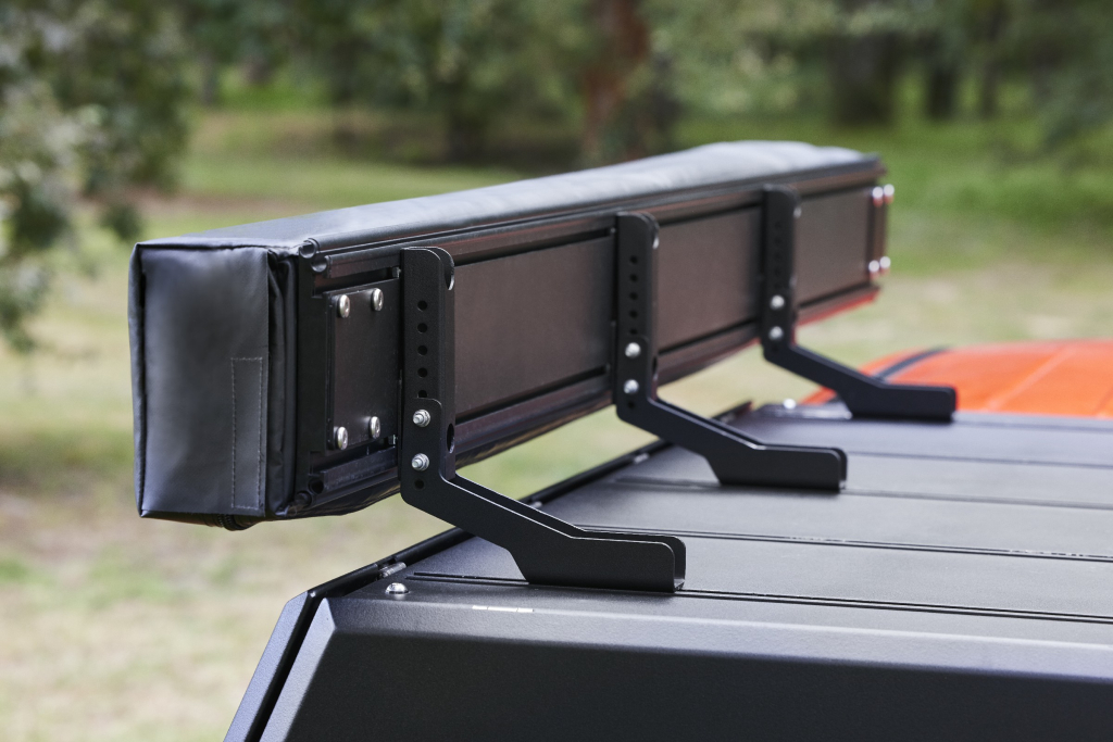 L'auvent est compatible avec la plupart des galeries Rockalu, Front Runner, Rhino Rack, grâce à des supports adaptateurs.