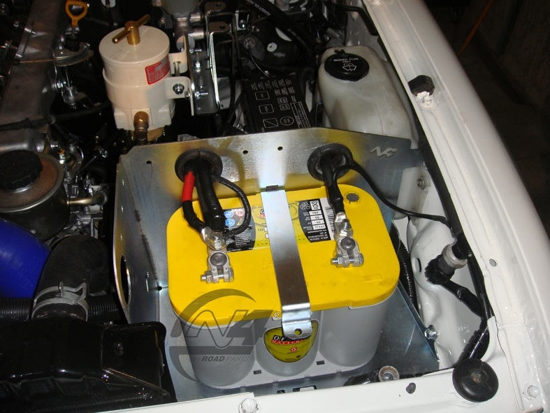 Les caissons en fibre d'origine vieillissent mal et ne sont pas adaptés à des batteries autres que de dimension identique à l'origine. C'est pourquoi ces caissons en acier électrozinguées viennent s'installer en lieu et place des origines. Mais ceux-ci sont adaptés aux diverses batteries (Optima, origine, ...) et sont pourvus de trous qui permettent la fixation d'équipements électriques (relais, disjoncteurs, supports fusibles,...).