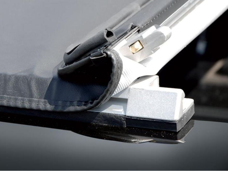 Ouverture et fermeture par un système de clips qui tend parfaitement la bâche