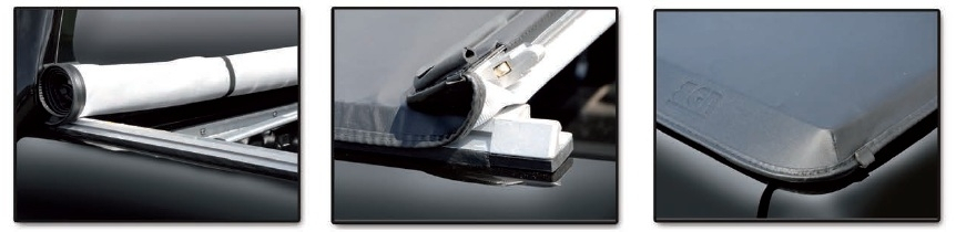 - ouverture et fermeture par un système de clips qui tend parfaitement la bâche