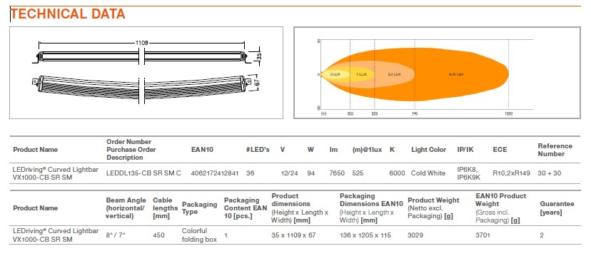 BARRE LED LEDRIVING INCURVÉ OSRAM LIGHTBAR VX1000-CB SR SM 12V/24V 7650LM