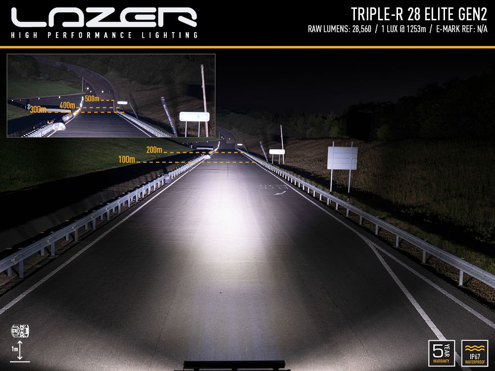 L'émission des projecteurs a été optimisée à une portée maximale en fonction des exigences du sport automobile de rallye et d'endurance, qui se déroule à des vitesses très élevées, au moyen de réflecteurs spécialement formés pour chaque LED. Alors que les lampes des séries ST et T éclairent également le bord de la route directement devant le véhicule, les lampes Triple-R sont optimisées pour la portée et n'atteignent l'éclairage latéral maximal qu'à partir d'environ la moitié de la portée. Par rapport à l'émission de lumière hybride des séries ST et T, la valeur de luminosité est jusqu'à cinq fois plus élevée au sommet.