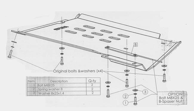 Les blindages Asfir sont en aluminium de qualité (6mm) et se fixent sur les points d'origine du véhicule, ils sont livrés avec des pattes de fixation en acier 4mm et la boulonnerie ; aucun perçage n'est à prévoir pour leur installation.