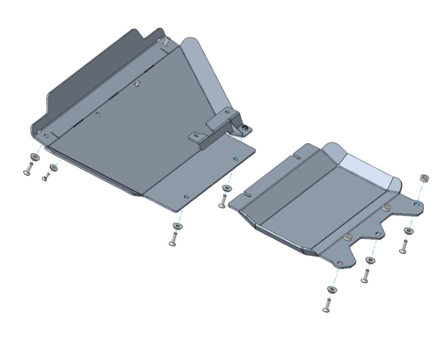 Kit complet comprennant : tôle de protection, nécessaire de montage, visserie, notice.