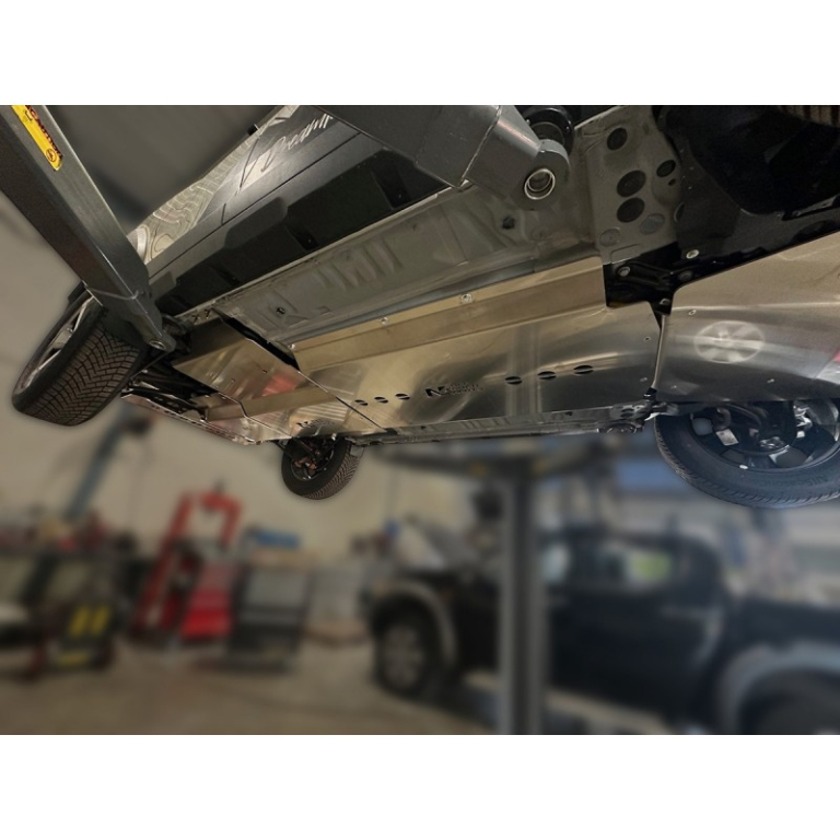 La plaque de blindage ou ski de protection est un élément permettant de protéger les organes essentiels du véhicule, notamment dans le cas de passage en milieu accidenté. indispensable en raid pour éviter de rentrer sur un plateau au premier rocher caché dans le sable. Ce modèle de blindage central protège le pot catalytique, l'arbre de transmission et offre une surface lisse au dessous du véhicule pour une meilleure glisse en tout-terrain.