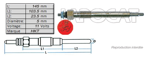 BOUGIE de PRECHAUFFAGE 11 volts HKT