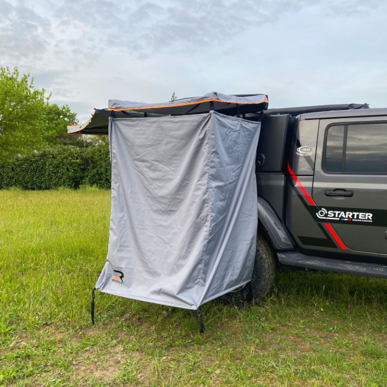 Tente douche ROCKALU NUBA : auvent douche robuste et pratique pour vanlife, bivouac et camping. Structure aluminium, toile résistante, installation rapide. Livraison rapide, garantie 3 ans.
