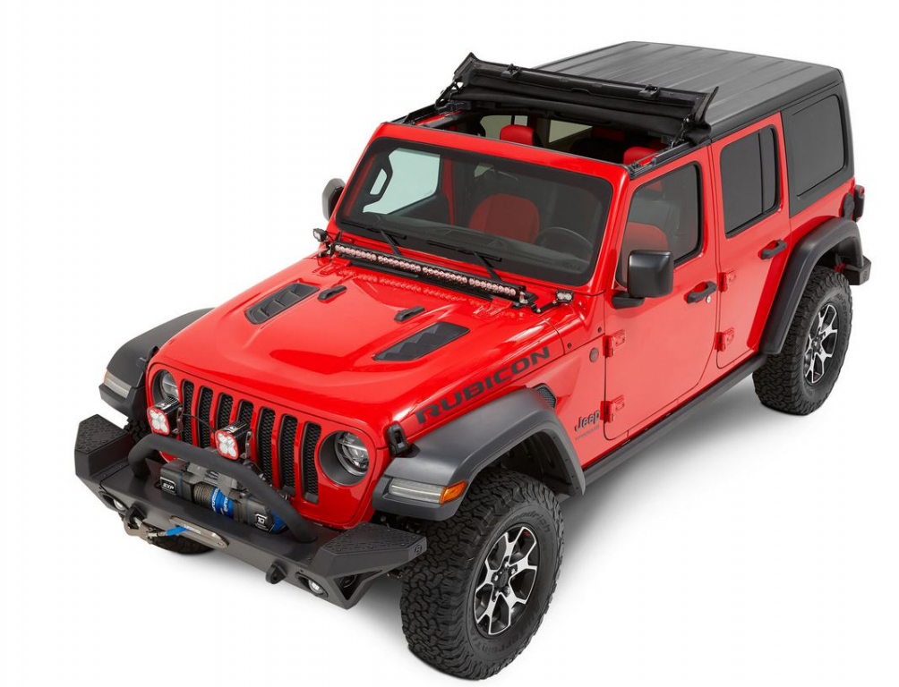 La capote pliante remplace les deux panneaux avant du Hard-Top modulaire Freedom-Top™ de la Jeep Wrangler JL (le reste du hardtop modulaire d’origine reste en place).