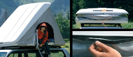 Le capuchon d’hiver, une protection supplémentaire contre l’humidité, le vent ou le froid. Le capuchon réalisé en nylon aluminé sert à se protéger du froid et du vent: il s’agit d’un accessoire très utile pour ceux qui voyagent dans les pays froids ou dans des endroits où l’amplitude thermique est importante. Facile d’utilisation grâce aux velcro situés sous le toit de la Columbus, il peut rester monté durant le voyage.