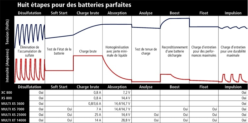 Le MXS 25 est un chargeur entièrement automatique à 8 étapes qui fournit 25A aux batteries 12V de 40 à 500Ah. La classe du chargeur est IP 44 (utilisation en extérieur), il est conçu pour protéger l’électronique du véhicule, il ne produit pas d’étincelle, il est protégé contre les inversions de polarité et les courts-circuits. Il bénéficie d’une garantie de deux ans.