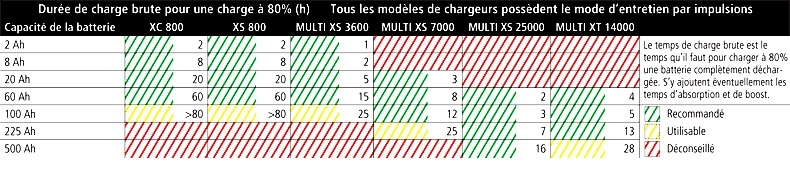 Il intègre une fonction d'entretien automatique qui permet de maintenir les batteries les plus grosses prêtes à l'emploi.