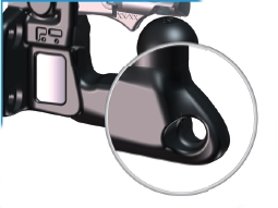 règlement R55 : les crochets ont été développés avec un trou pour recevoir le mousqueton du dispositif de secours permettant un guidage résiduel de la remorque sans toucher le sol en cas de désaccouplement.