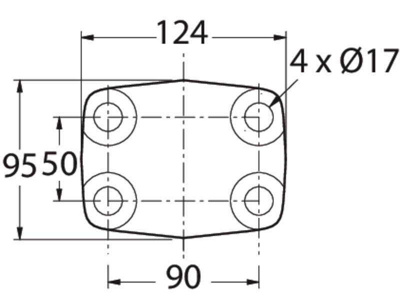 Fixation : 4 trous Ø17 ENTRAXE 90x50