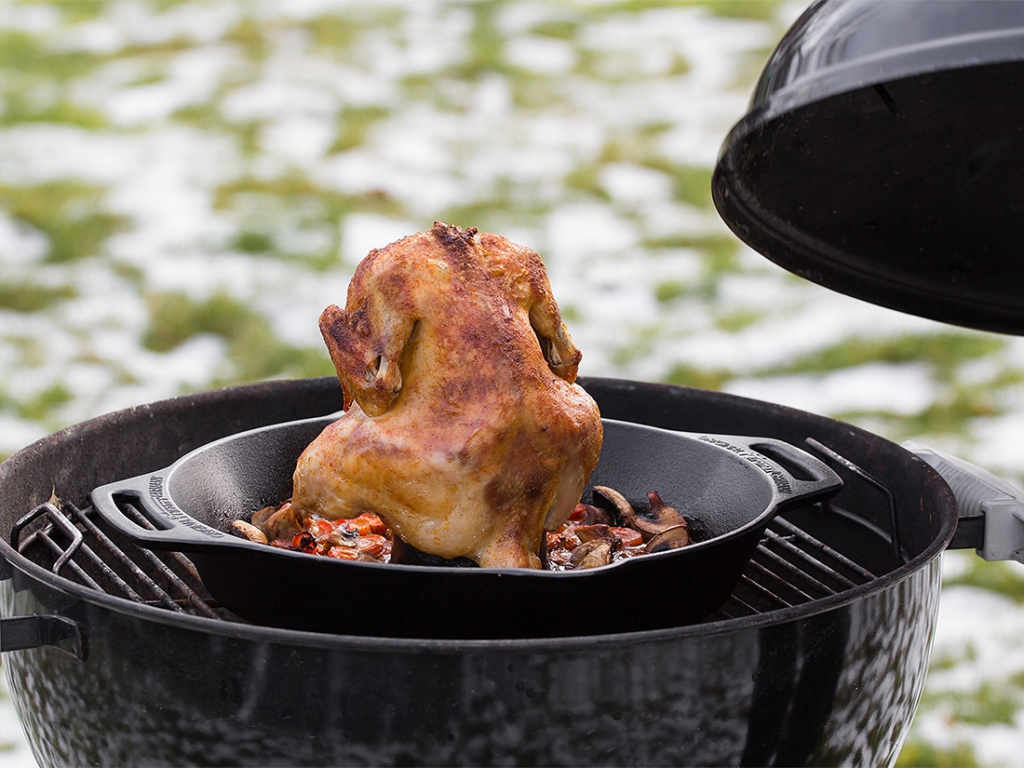 Avec le Cuit-poulet cf30 en fonte de grande qualité, vous préparez très facilement un poulet, une caille ou un petit canard au four ou sur un barbecue adéquat. Grâce à la répartition optimale de la chaleur, la volaille placée sur le cuit-poulet en fonte est cuite de façon juteuse et uniforme.