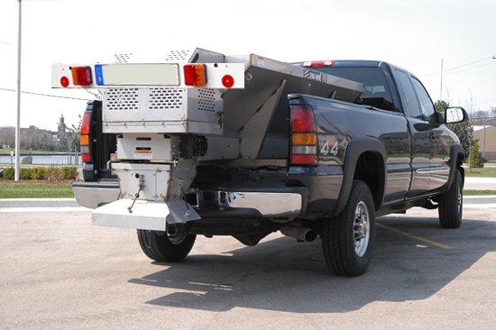 Ce distributeur de sel de 570 L à poser sur le bac convient pour des transporteurs, petits camions