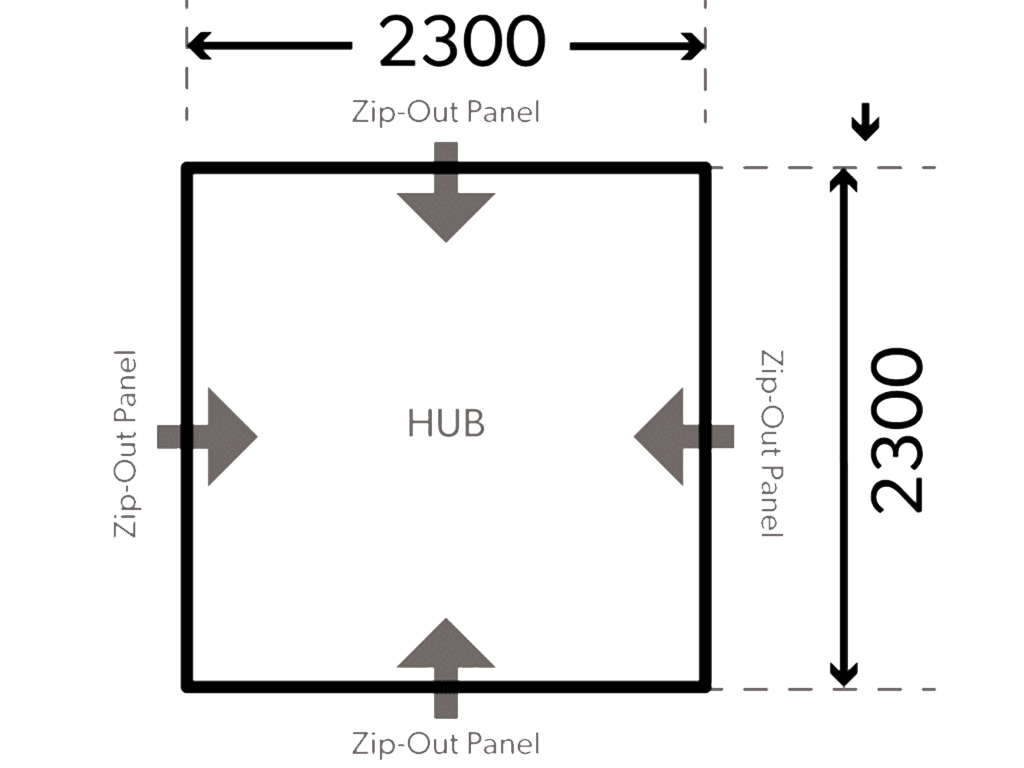 2300mm (90.6'') L x 2300mm (90.6'') W x 2300mm (90.6'') H
