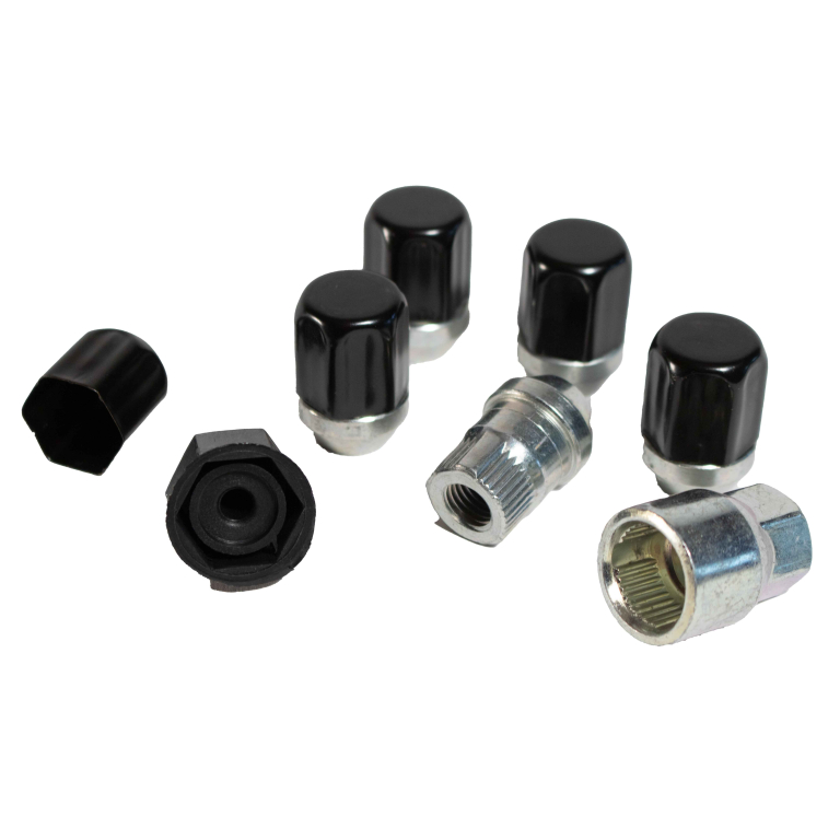 Accueil > Jantes & pneus > Accessoires Jantes et Pneus > Ecrous > ECROUS ANTIVOL NOIRS 12 X 1.5 ( jeu de 5 pièces + clé)
