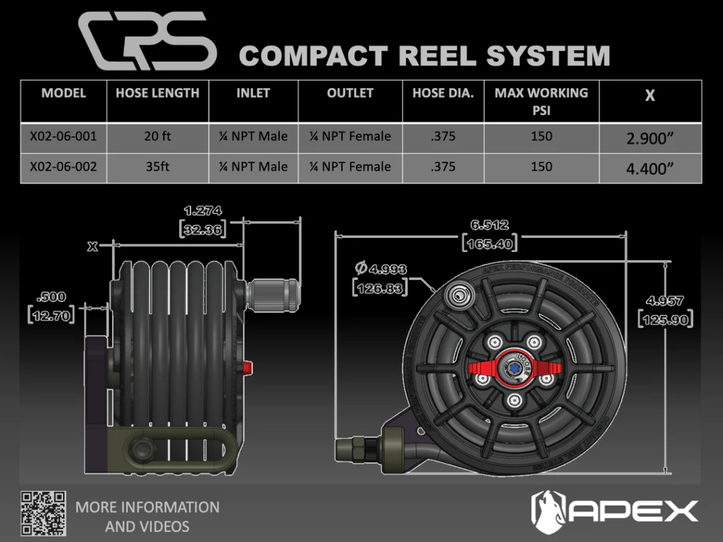BREVET EN ATTENTE - Conçu et construit pour être l'enrouleur compact de la plus haute qualité sur le marché. Le système Compact Reel change la donne en matière de gonflage mobile. De conception compacte et universelle : il fonctionne dans une grande variété d'applications !