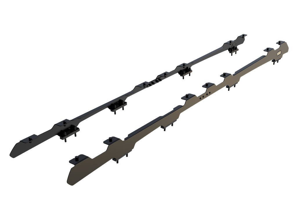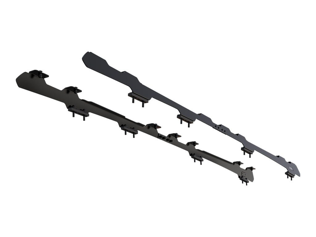 Cette paire de rails, avec des pieds de montage intégrés, est utilisée pour fixer la galerie de toit Front Runner Slimline II au Toyota Land Cruiser 200 en utilisant les points de montage existants du véhicule.