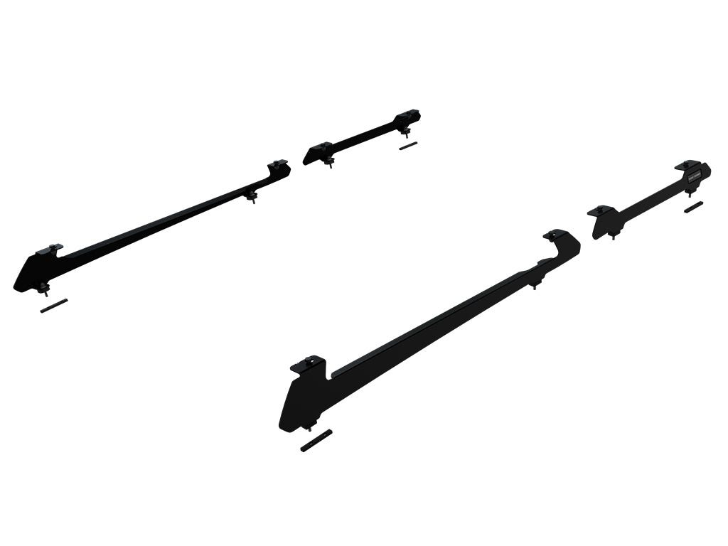 Cette paire de rails, avec pieds de montage intégrés, est utilisée pour fixer la galerie Front Runner Slimline II au Land Rover Freelander en utilisant les points de montage existants du véhicule.