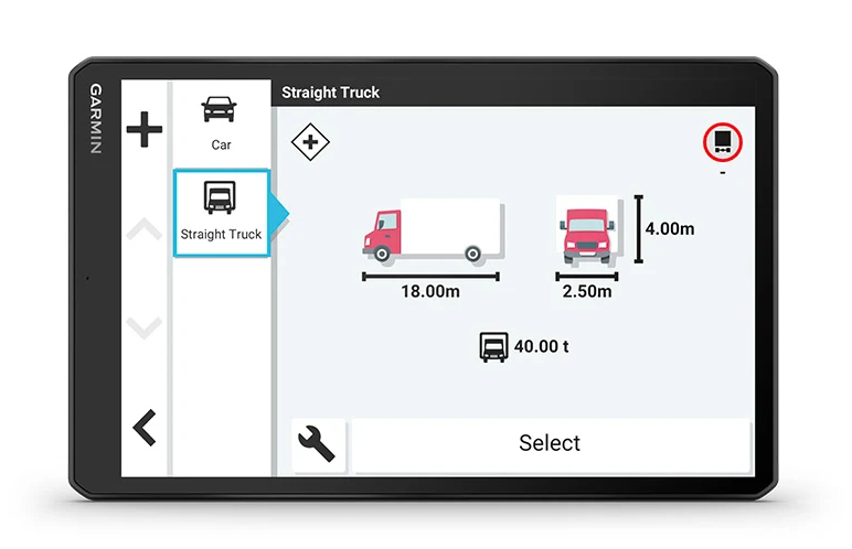 • Ce GPS 10″ propose des itinéraires personnalisés en fonction de la taille et du poids de votre véhicule, des suggestions stratégiques pour le plein de carburant et les pauses et une planification des arrivées innovante.