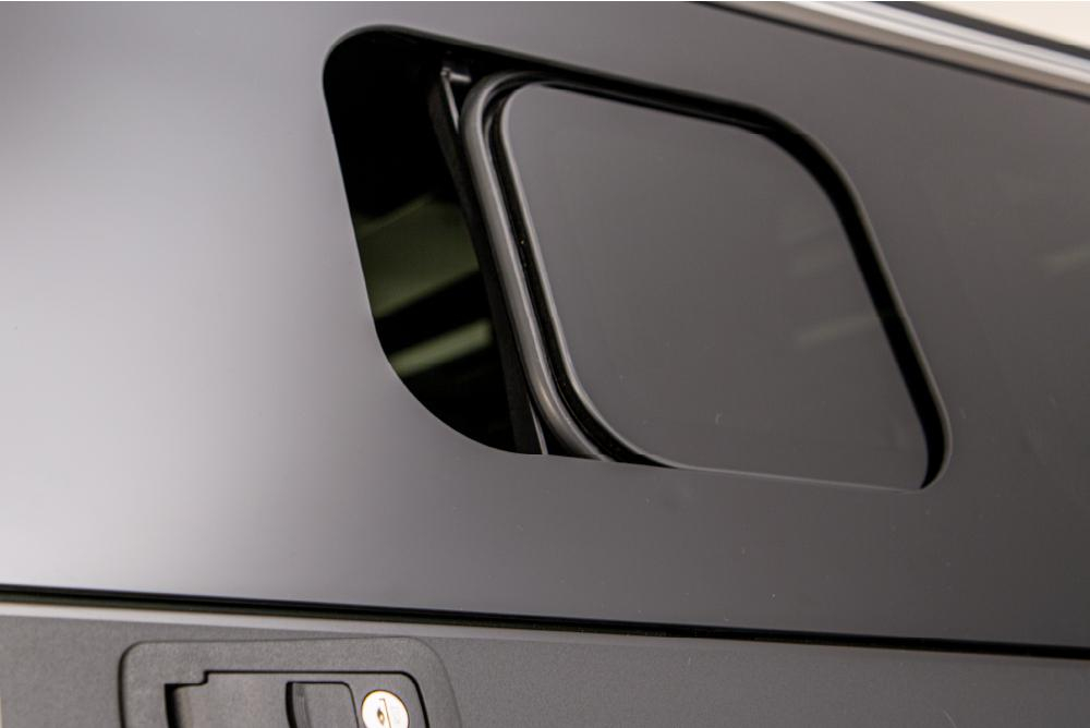 Les fenêtres coulissantes intégrées sur les vitres latérales du hardtop offrent une excellente ventilation du coffre. Avec 4 positions verrouillables pour obtenir le débit d’air souhaité.