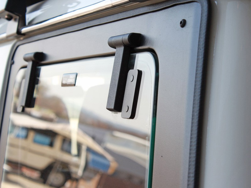 Le hayon latéral en verre de Front Runner remplace la fenêtre latérale GAUCHE d'origine. Créez un accès facile vers vos objets rangés dans votre Toyota Land Cruiser 76.