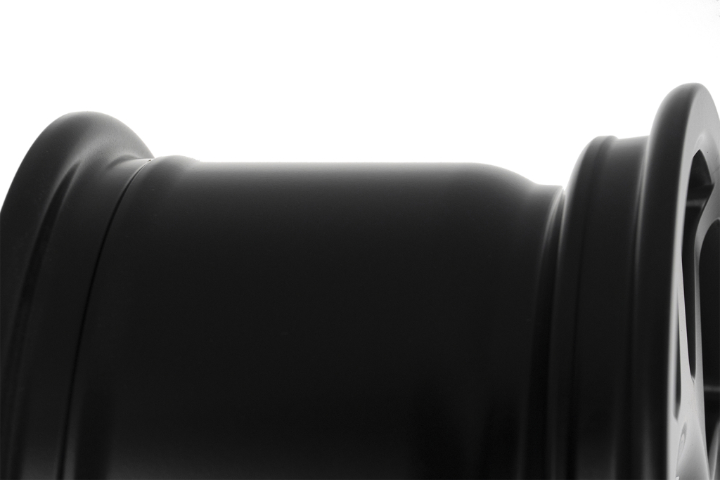 Les rayons internes du bord de la jante ont un profil qui rentre vers le centre, ce qui permet d'avoir un déport négatif protégeant les pièces mécaniques des gravillons et du sable et conçu pour laisser suffisamment d'espace pour les gros freins.