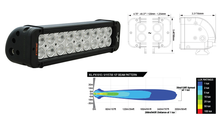 Le Xmitter Prime Xtreme Black Edition est la dernière génération de la barre Xmitter originale dotée de nouvelles technologies. Il est doté de Prime Drive pour la gestion thermique électronique et la capacité de gradation. le PX36M est capable de produire jusqu'à 19 008 lumens et plus de 429 mètres de lumière utilisable.