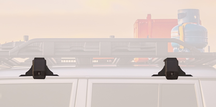 Des patins en acier avec des manchons en plastique sont inclus pour répartir le chargement sur la gouttière du toit des véhicules. Des pieds de fixation s’adaptant à la plupart des véhicules à toit bas ont été développés.